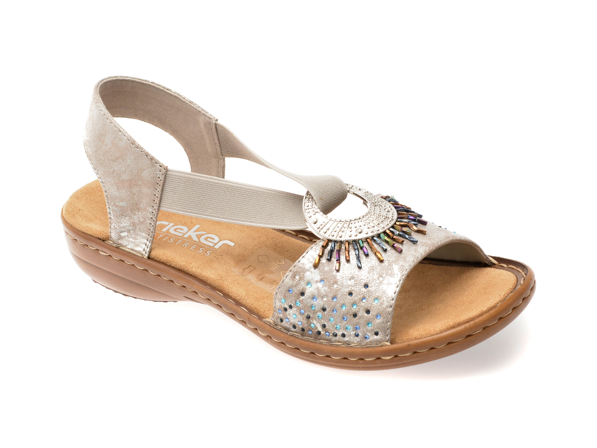 Sandale RIEKER argintii, 60880, din piele ecologica face parte din categoria Femei > Sandale de la brandul Rieker.