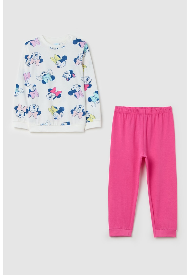 Caracteristici Culoare: alb – fucsia Stil: casual Imprimeu: desene animate Material: bumbac Decolteu: la baza gatului Lungime maneca: maneca lunga Lungime pantaloni: lungi Colectie: primavara – vara – toamna – iarna Compozitie Exterior: 100% bumbac