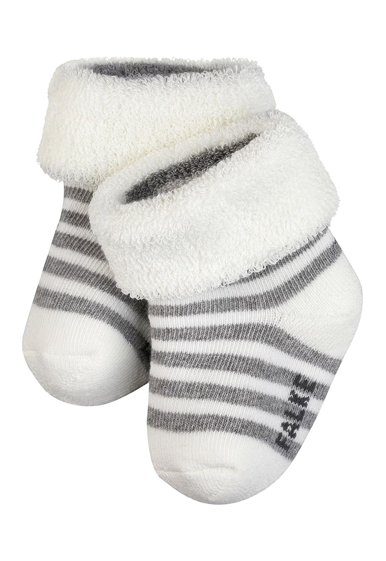 Caracteristici generale Tip produs: sosete Tip: pe glezna Numar perechi: 1 Varsta: 0 luni – 1 luna Culoare: alb – gri inchis Material: sintetic – bumbac Imprimeu: dungi – logo Compozitie Exterior: 89% bumbac – 10% poliamida – 1% elastan