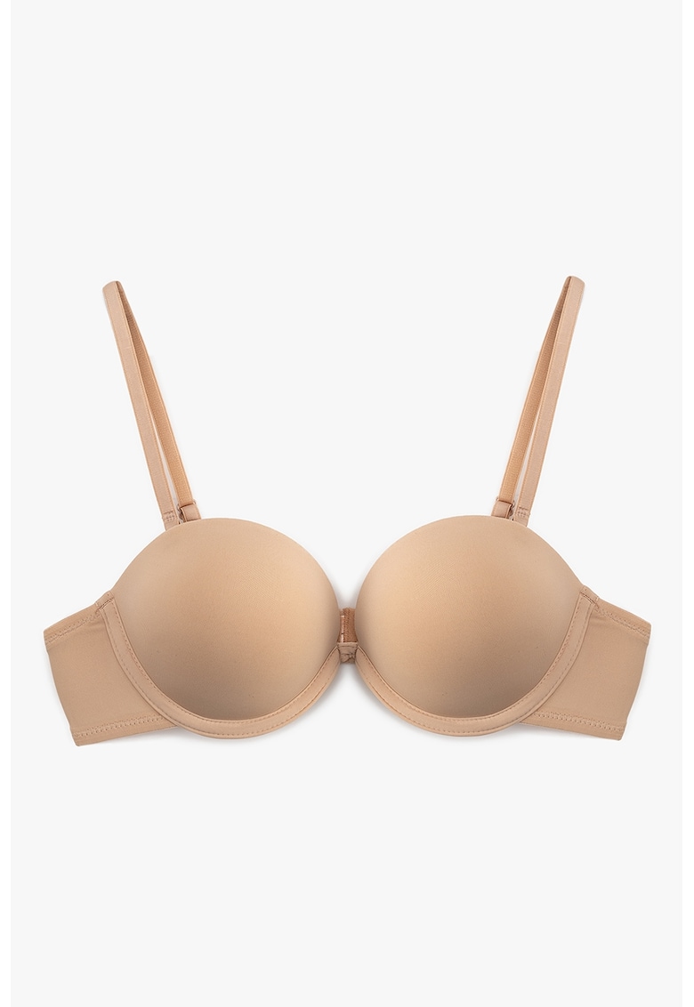 Caracteristici Tip produs: sutien Culoare: camel Material: sintetic Imprimeu: uni Barete: ajustabile Forma cupa: push up Burete cupa: cu burete Sustinere metalica: cu sarma Sistem inchidere: tija si anou Compozitie Exterior: 86% poliamida – 14% elastan Captuseala: 100% poliester