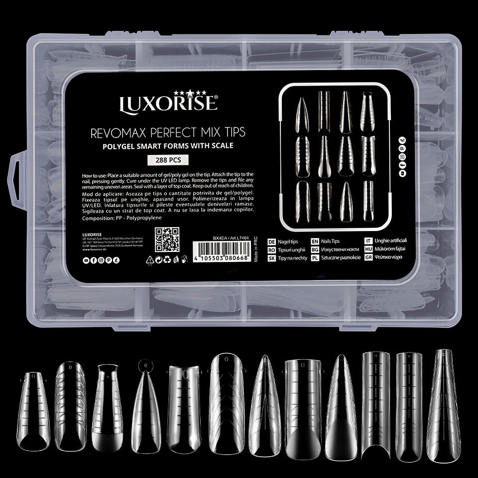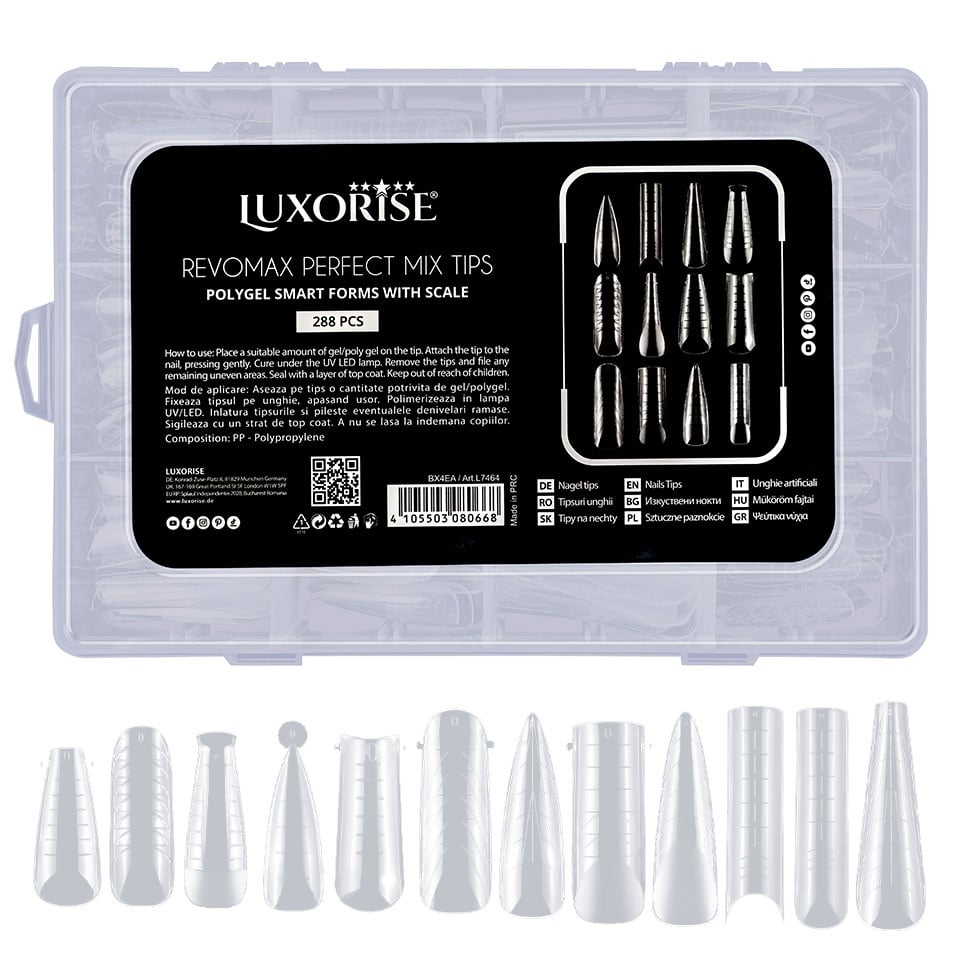 Tipsuri Reutilizabile REVOMAX Perfect Mix LUXORISE pentru Polygel si Gel, 288 buc face parte din categoria Accesorii Unghii > Tipsuri – Unghii False de la brandul Kit Unghii.
