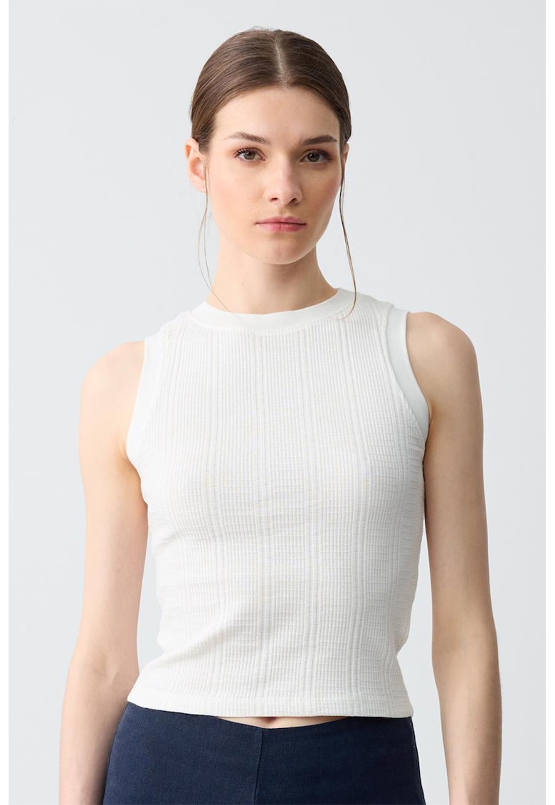 Top crop cu aspect striat face parte din categoria FEMEI/IMBRACAMINTE/Tricouri si maiouri IMBRACAMINTE/Tricouri si maiouri de la brandul JIMMY KEY.