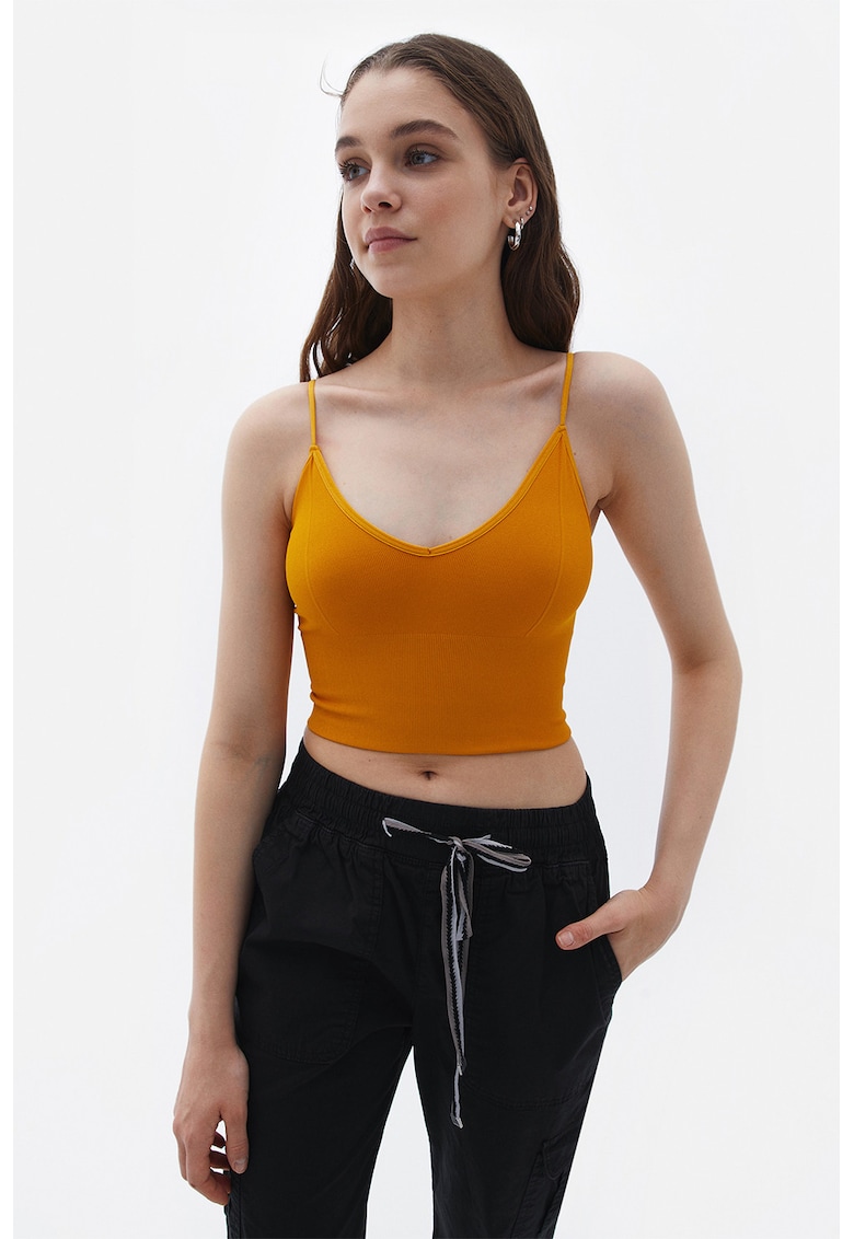 Top crop cu bretele inguste face parte din categoria FEMEI/IMBRACAMINTE/Tricouri si maiouri IMBRACAMINTE/Tricouri si maiouri de la brandul OXXO.