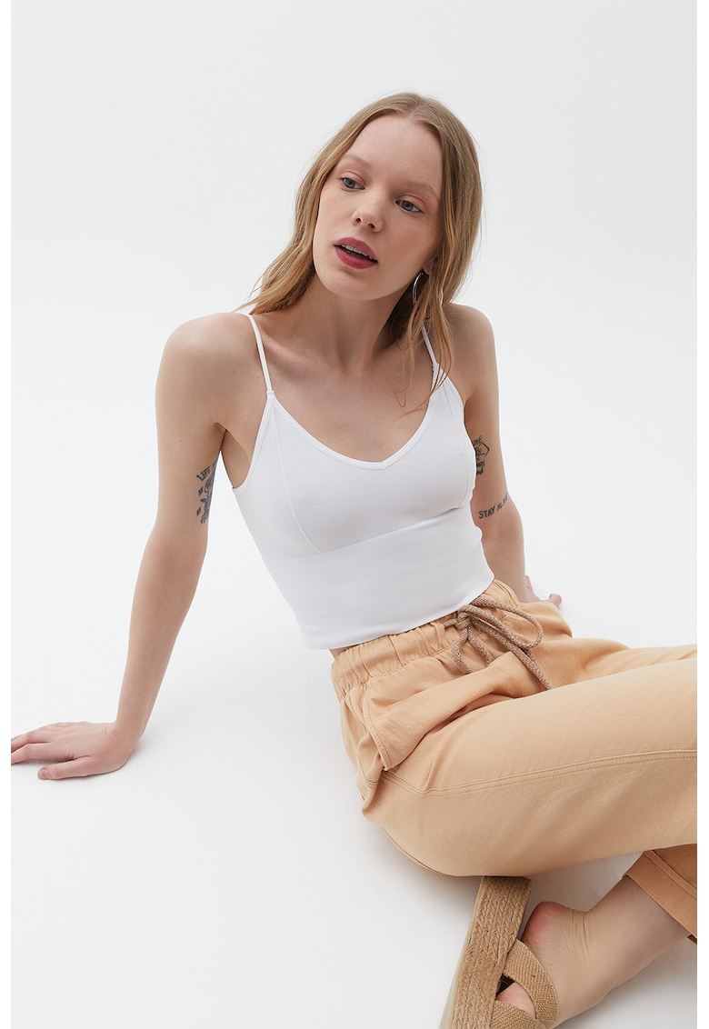 Top crop cu model uni face parte din categoria FEMEI/IMBRACAMINTE/Tricouri si maiouri IMBRACAMINTE/Tricouri si maiouri de la brandul OXXO.