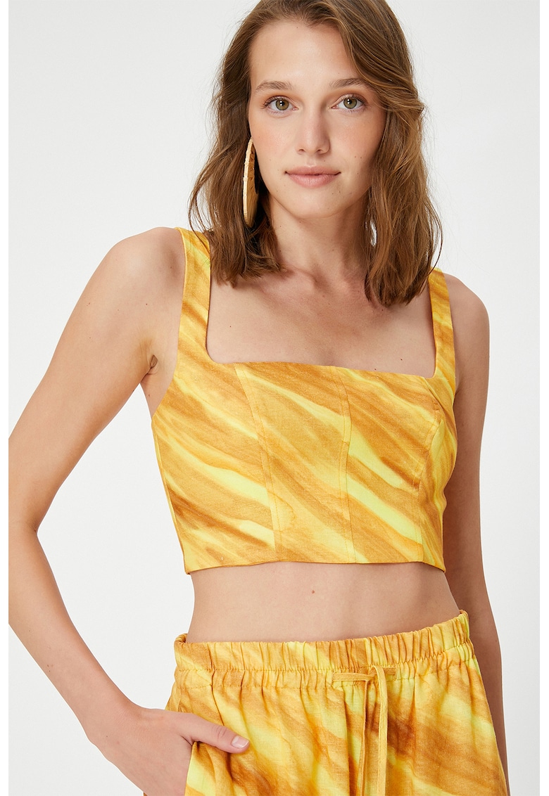 Top crop din amestec de in cu decolteu patrat face parte din categoria FEMEI/IMBRACAMINTE/Tricouri si maiouri IMBRACAMINTE/Tricouri si maiouri de la brandul KOTON.