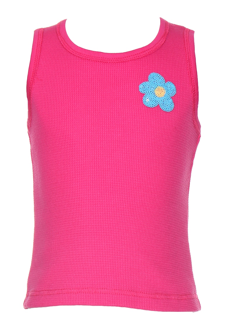 Caracteristici Culoare: fucsia Material: bumbac Imprimeu: floral Croiala: regular fit Decolteu: la baza gatului Lungime maneca: fara maneca Detalii: aplicatie cu paiete Compozitie Exterior: 97% bumbac – 3% elastan