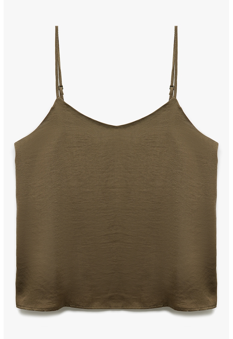 Caracteristici Culoare: verde masliniu Imprimeu: uni Material: sintetic Croiala: regular fit Model: in v Barete: ajustabile Compozitie Exterior: 100% poliester