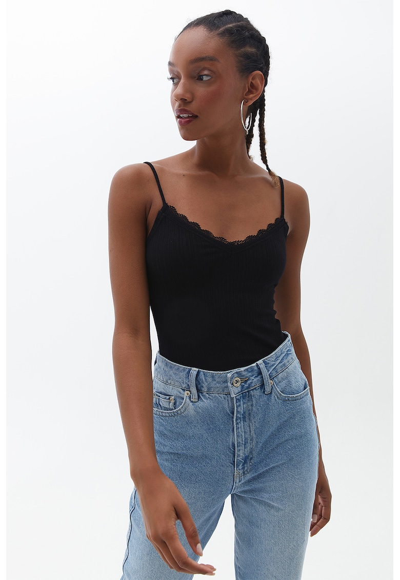 Top cu decolteu in V si garnitura din dantela face parte din categoria FEMEI/IMBRACAMINTE/Tricouri si maiouri IMBRACAMINTE/Tricouri si maiouri de la brandul OXXO.