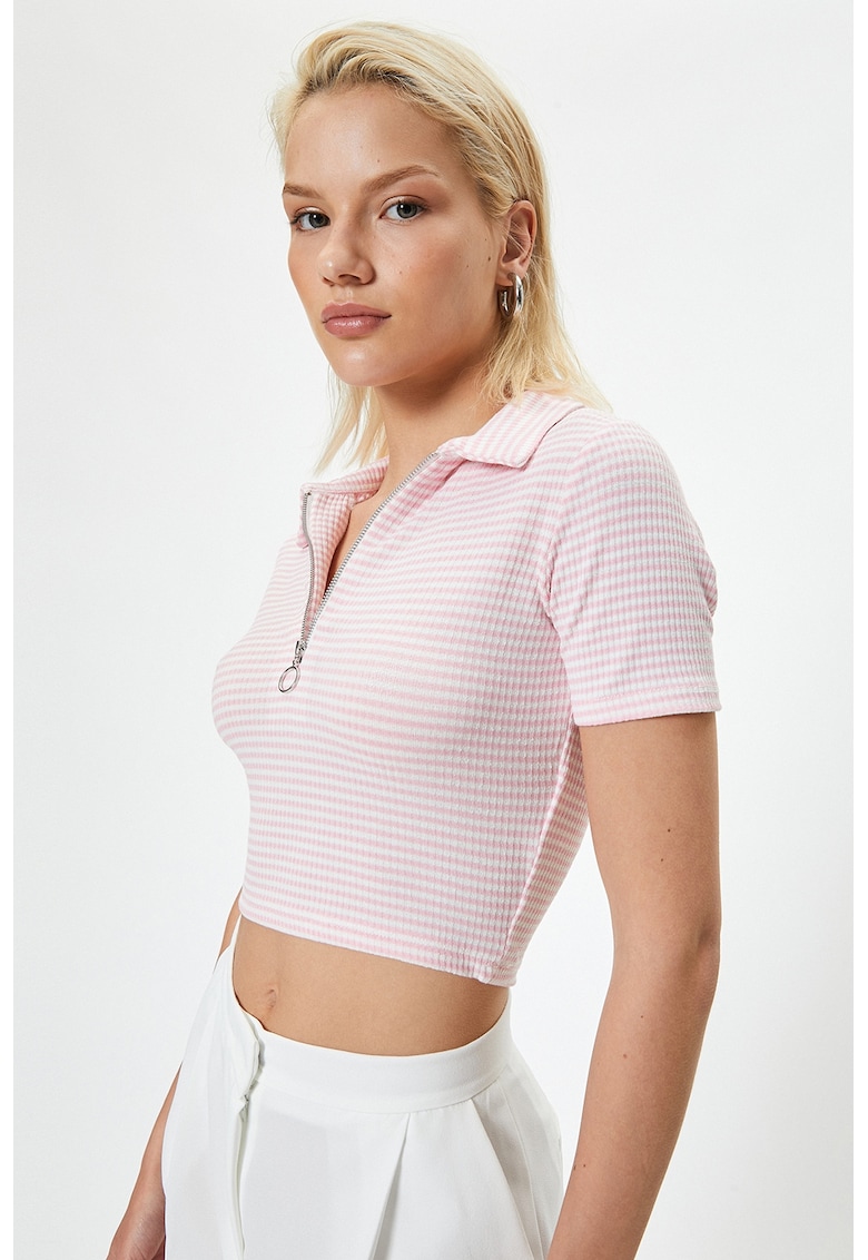 Tricou crop cu fermoar scurt si model gingham face parte din categoria FEMEI/IMBRACAMINTE/Tricouri si maiouri IMBRACAMINTE/Tricouri si maiouri de la brandul KOTON.