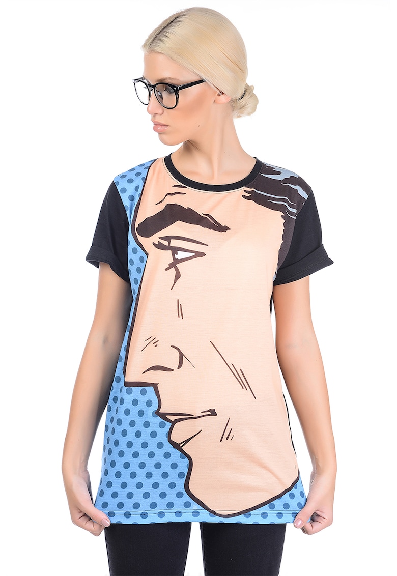 Tricou cu decolteu rotund si imprimeu supradimensionat face parte din categoria FEMEI/IMBRACAMINTE/Tricouri si maiouri IMBRACAMINTE/Tricouri si maiouri de la brandul FAMILYSTA®.