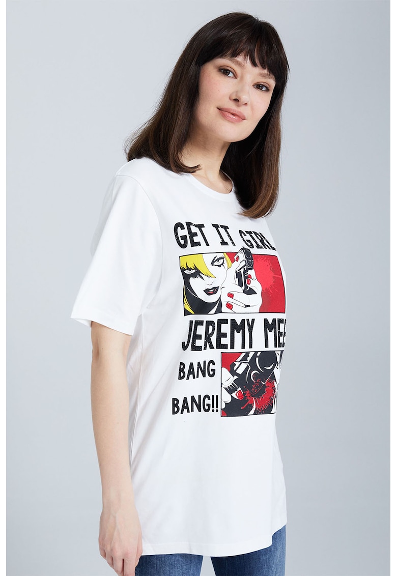Tricou cu imprimeu grafic si decolteu la baza gatului face parte din categoria FEMEI/IMBRACAMINTE/Tricouri si maiouri IMBRACAMINTE/Tricouri si maiouri de la brandul Jeremy Meeks.