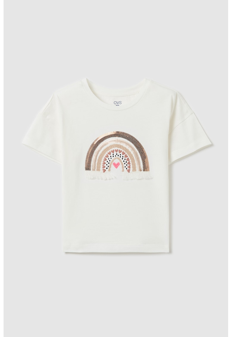 Tricou cu strasuri si detaliu brodat face parte din categoria FETE/IMBRACAMINTE/Tricouri si maiouri IMBRACAMINTE/Tricouri si maiouri de la brandul OVS.