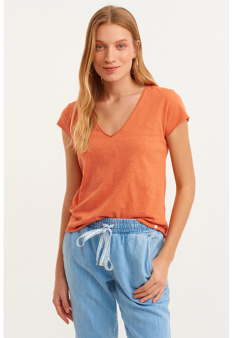 Tricou de bumbac cu decolteu in V face parte din categoria FEMEI/IMBRACAMINTE/Tricouri si maiouri IMBRACAMINTE/Tricouri si maiouri de la brandul OXXO.