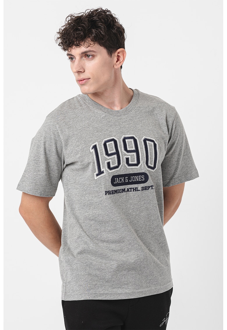 Caracteristici Culoare: albastru inchis – gri melange Imprimeu: text Material: bumbac Croiala: regular fit Model: decolteu la baza gatului Lungime maneca: maneca scurta Linie Brand: premium by jack&jones Compozitie Exterior: 100% bumbac Info model Modelul poarta un produs de marimea M. Marimi model: 182 cm inaltime – 95 cm bust – 74 cm talie – 97 cm sold