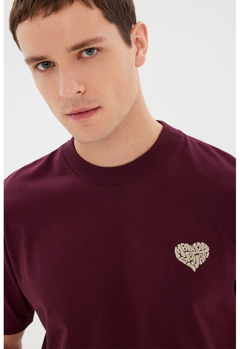 Caracteristici Culoare: violet tyrian Imprimeu: uni – text Material: bumbac Croiala: regular fit Model: decolteu la baza gatului Lungime maneca: maneca scurta Compozitie Exterior: 100% bumbac