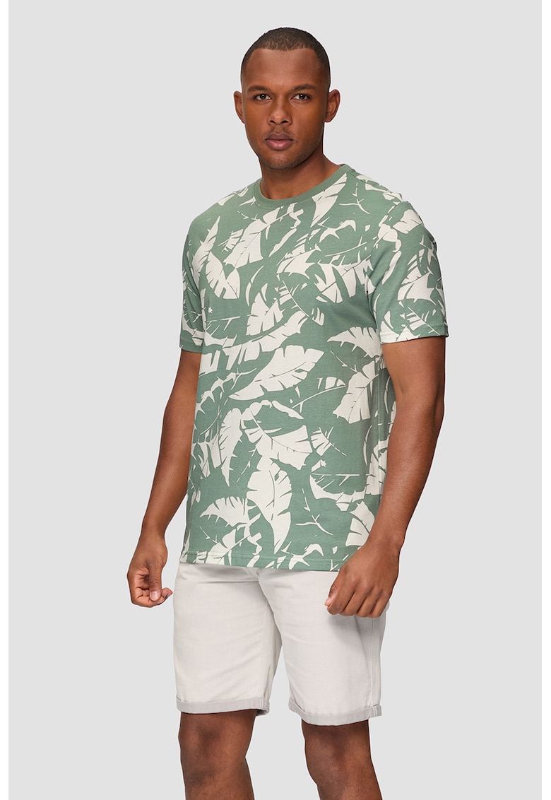 Tricou de bumbac cu imprimeu tropical face parte din categoria BARBATI/IMBRACAMINTE/Tricouri si maiouri IMBRACAMINTE/Tricouri si maiouri de la brandul QS.