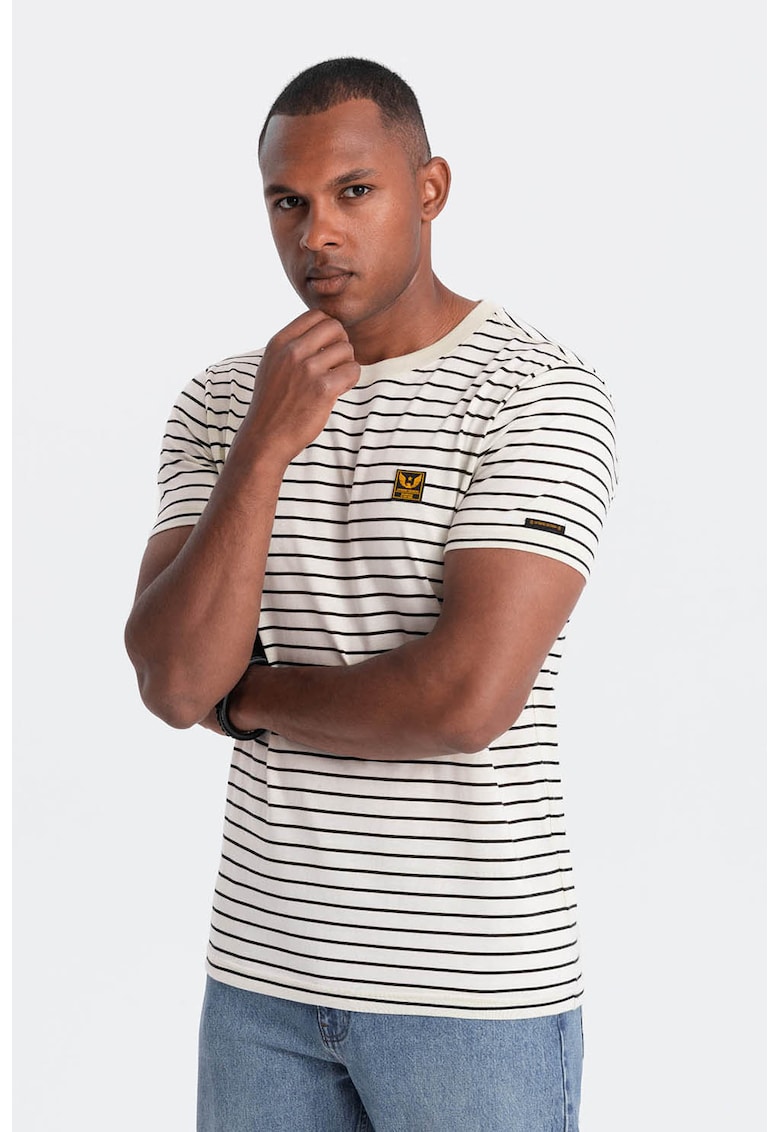 Tricou din amestec de bumbac cu dungi face parte din categoria BARBATI/IMBRACAMINTE/Tricouri si maiouri IMBRACAMINTE/Tricouri si maiouri de la brandul OMBRE.