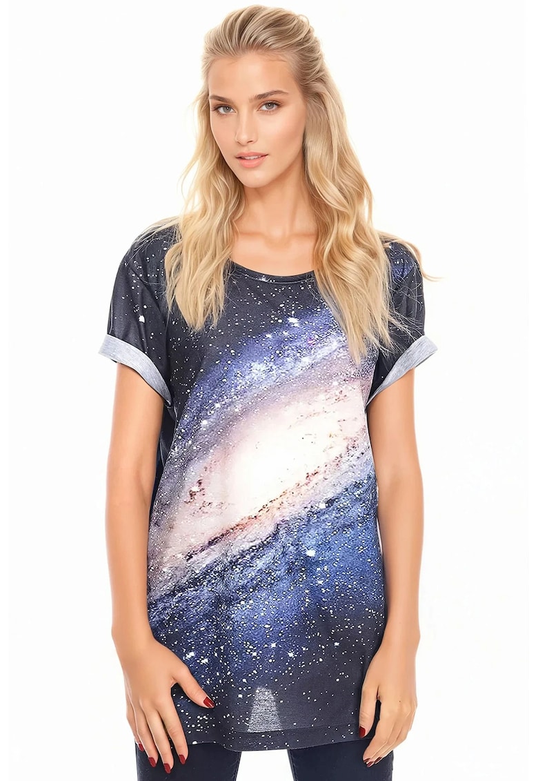 Tricou lejer cu imprimeu cosmic face parte din categoria FEMEI/IMBRACAMINTE/Tricouri si maiouri IMBRACAMINTE/Tricouri si maiouri de la brandul FAMILYSTA®.