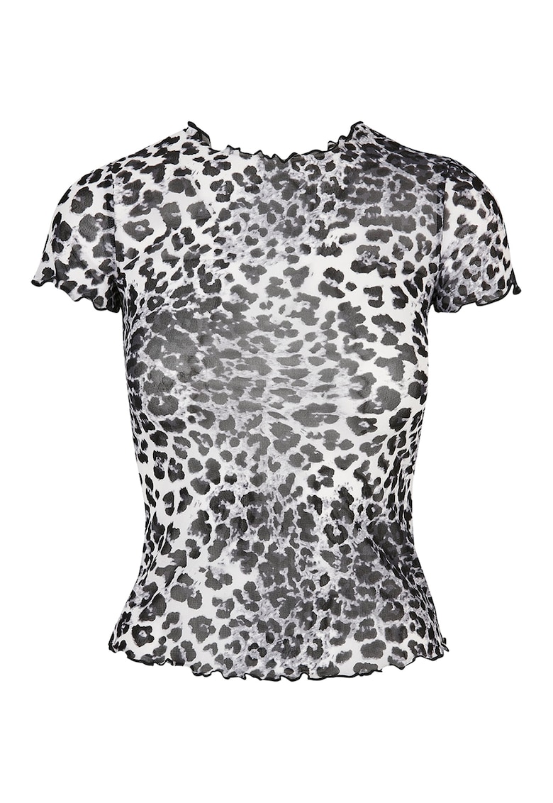 Caracteristici Culoare: alb – negru Imprimeu: animal print Material: poliamida Croiala: slim fit Model: decolteu la baza gatului Lungime maneca: maneca scurta Compozitie Exterior: 94% poliamida – 6% elastan