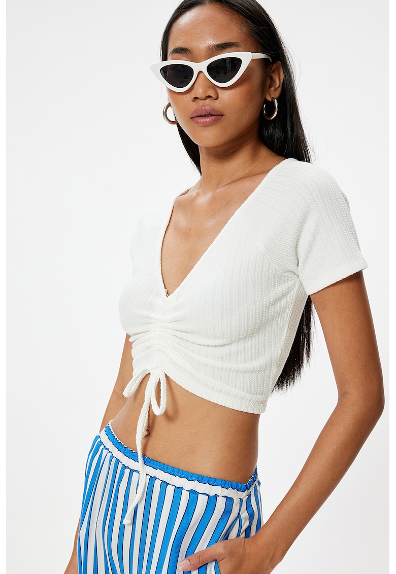 Tricou texturat cu decolteu in V face parte din categoria FEMEI/IMBRACAMINTE/Tricouri si maiouri IMBRACAMINTE/Tricouri si maiouri de la brandul KOTON.