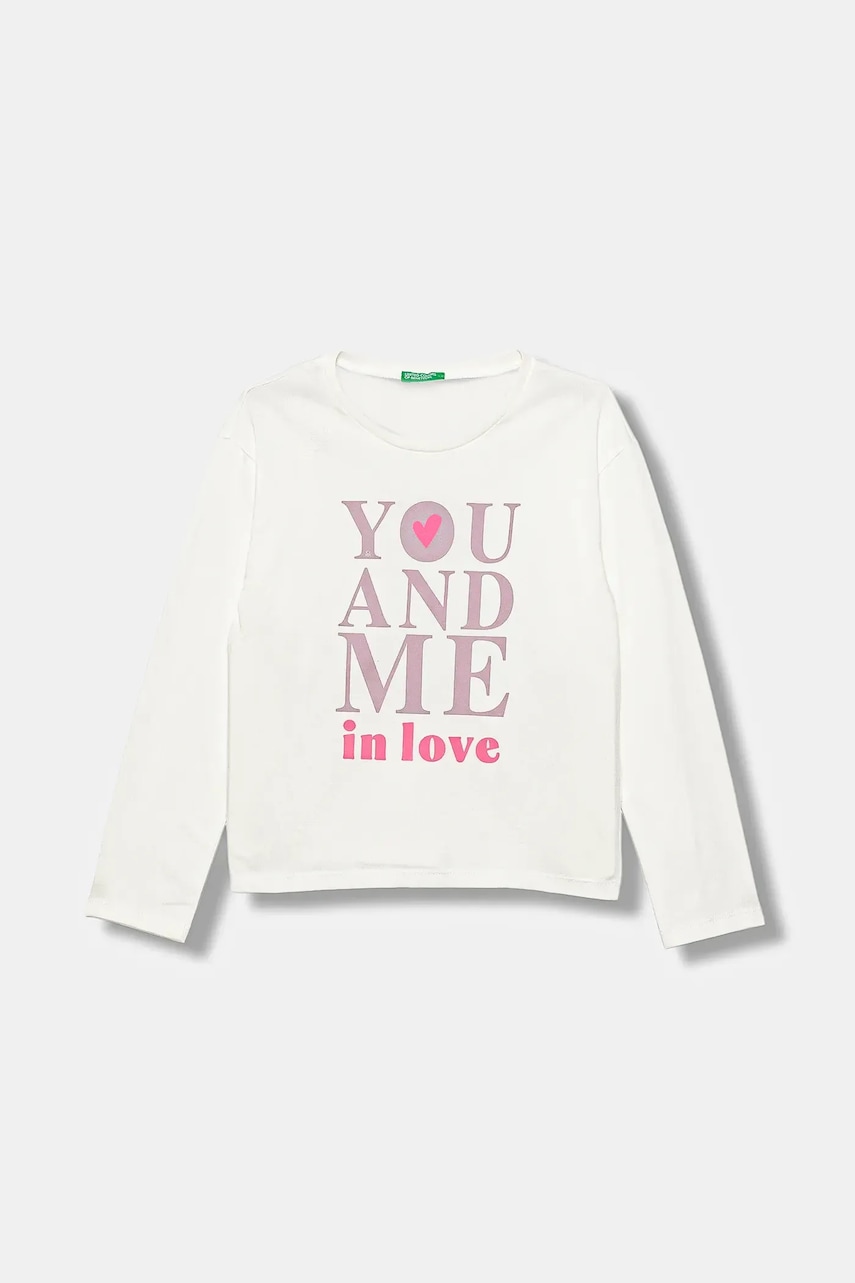 United Colors of Benetton longsleeve din bumbac pentru copii culoarea alb, 3JERC10QM face parte din categoria Fete Îmbrăcăminte de la brandul United Colors of Benetton.