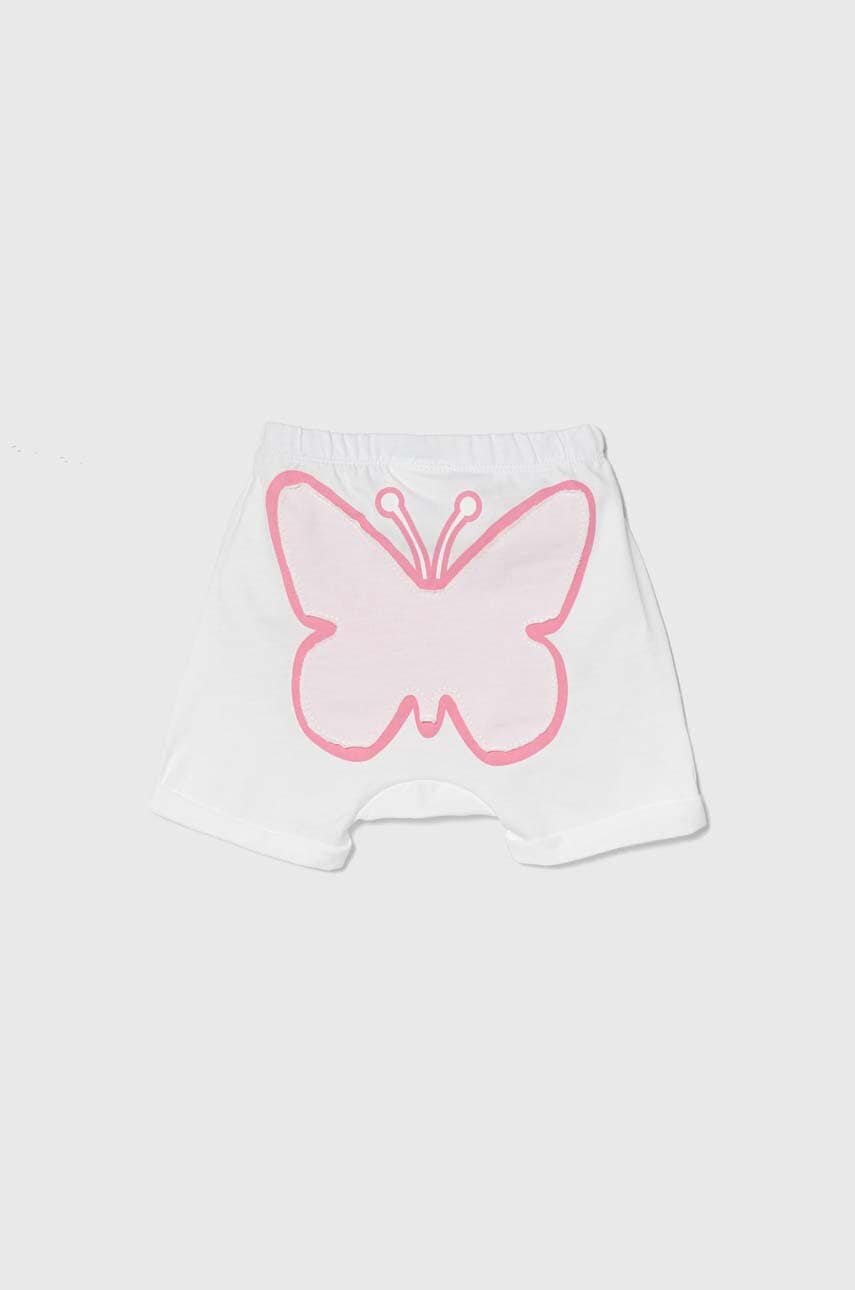 United Colors of Benetton pantaloni scurți din bumbac pentru bebeluși culoarea alb, cu imprimeu, talie reglabila face parte din categoria Fete Îmbrăcăminte de la brandul United Colors of Benetton.