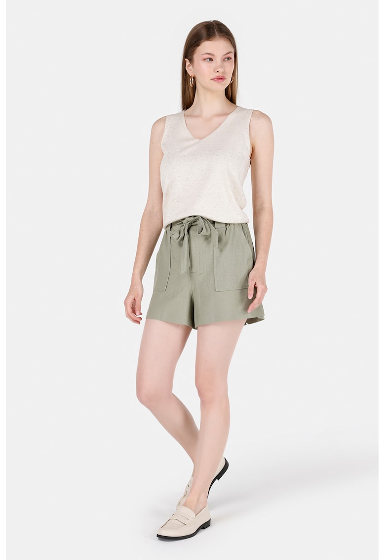 Caracteristici Culoare: bej Imprimeu: uni Material: sintetic – bumbac Model: in v Croiala: regular fit Sistem inchidere: fara inchidere Lungime maneca: fara maneca Detalii: material tricotat fin Compozitie Exterior: 50% bumbac – 44% poliester – 6% in