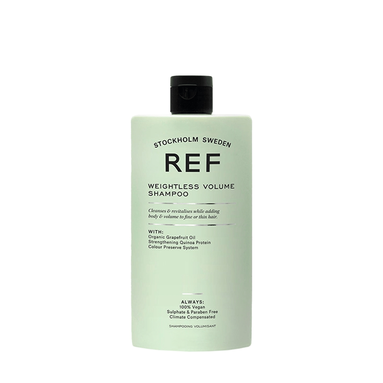 REF oferă produse de îngrijire a părului create cu ingrediente de înaltă calitate la bază cărora stă o formulă suedeză. Produsele au o formulă vegană și sunt destinate pentru orice nevoie de îngrijire sau stilizare a părului. Acest șampon este potrivit pentru părul fin, care are nevoie de volum și vitalitate. Curăță eficient scalpul și părul, oferindu-i strălucire și întărind firul de păr.